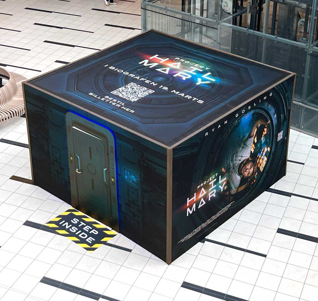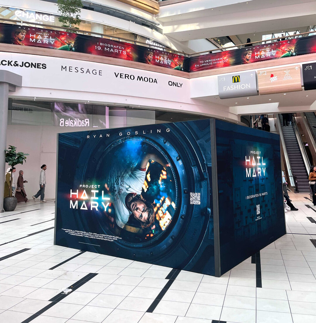 By Retpen har bla. designet outdoor-facader, pizzabakke, en installation i et stortcenter, samt pressevæg og velkomstskilt til gallapremieren.